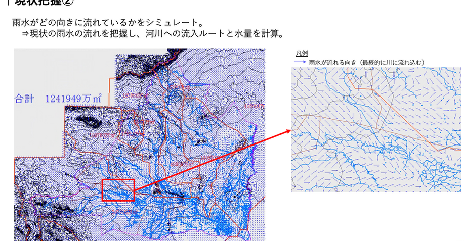 山や川、海の水が、どこをどのように通って、どこに到達するのか?のシミュレーションが可能であり、